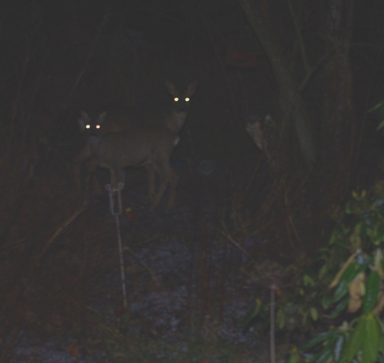 Inte menar du väl att krogen är stängd vid den här tiden? Experiment med fjärrutlösning och blixt. Rådjurens ögon är tydligen i likhet med hund och katt försedda med en reflekterande baksida som speglar ljuset från kamerablixten.