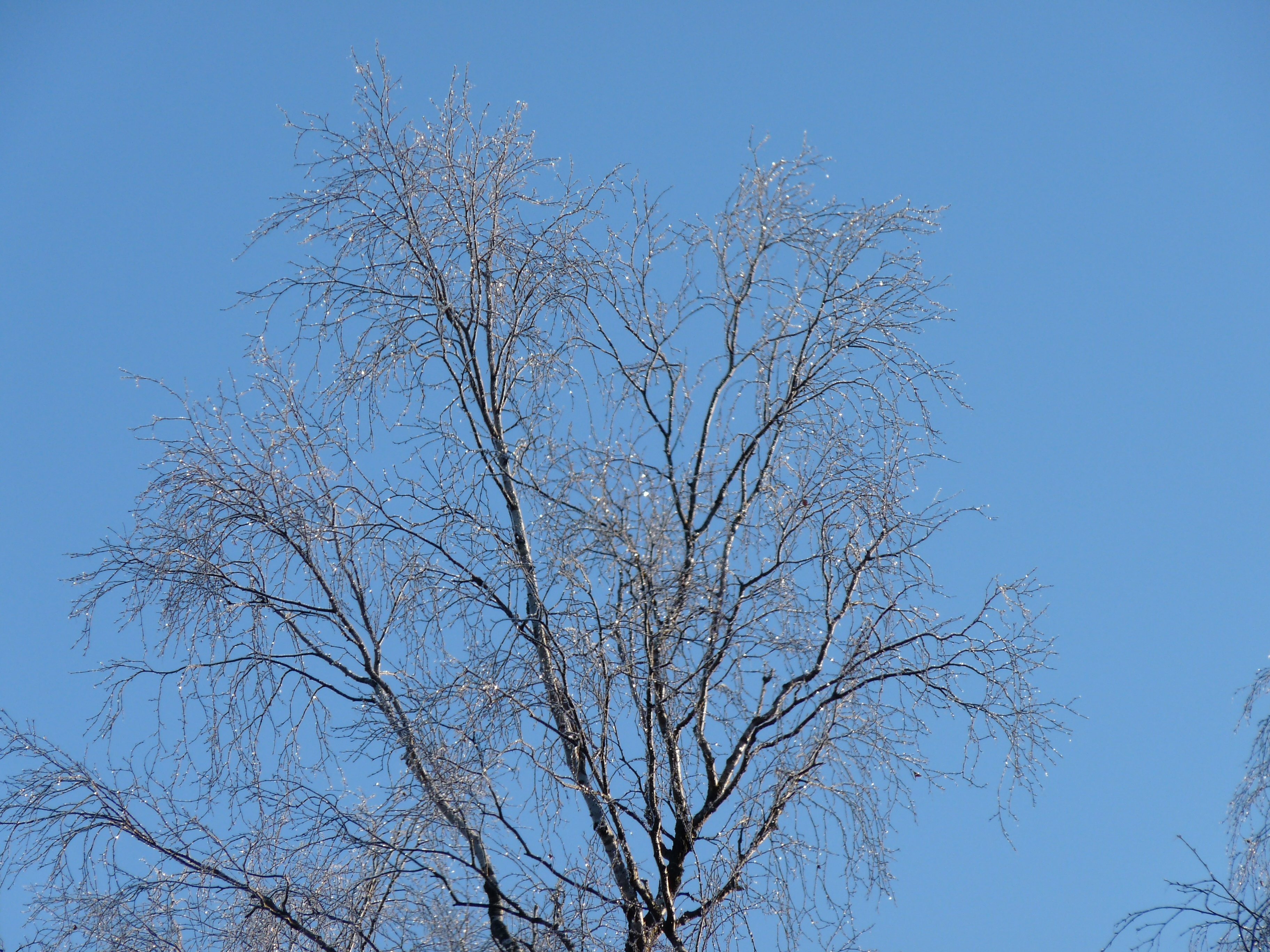 Efter en kall natt gnistrar rimfrosten i björkarna som diamanter.