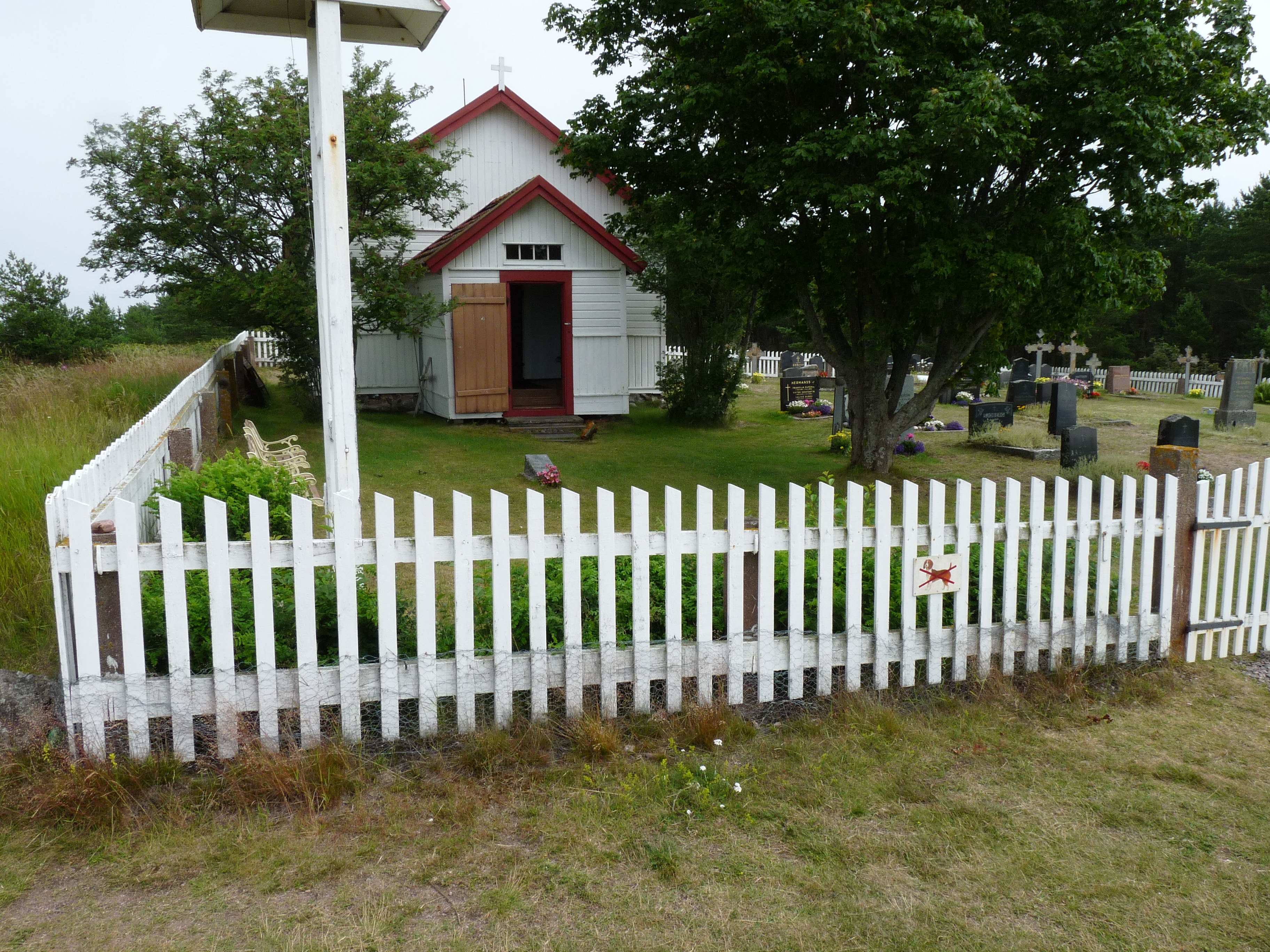 Jag uppfattade att vinden eventuellt hade mojnat lite och eventuellt svängt något mot väst. Det kan hända ett uppfattningen endast var en följd av att jag låg i lä och vinden sökte sig runt holmen. Jag startade igen och lyckades nu med viss hjälp av storsegel och full gas ta mig upp mot Prackskär varifrån jag seglade ner till inloppet till sundet mot Hitis/Högsåra. Inne i sundet såg jag en inbjudande vik i trakten av Norstöedet. Viken är stenig på mitten men det går utan problem att följa stranden. Jag valde igen en ankarplats nära vasskanten helt enkelt för att reservankaret höll så dåligt. Denna gång kastade jag inte ankaret vid ankringsförsöket utan ankarlinan var korrekt fäst …