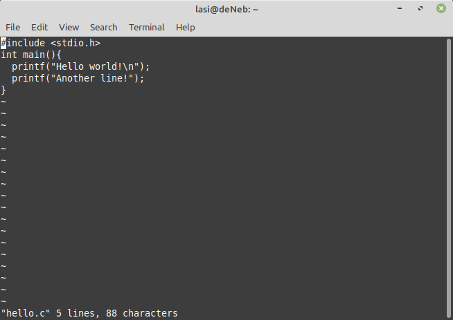 Filens innehåll är korrekt. Vi kan ladda in filen i texteditorn ”vi” och göra en liten förändring. Vi ändrar texten till: This text document is moved from PDP11 to ”deNeb”. Jag byter namn på filen till PDP11.txt så att jag kan verifiera att jag faktiskt har flyttat filen tillbaka till PDP11.