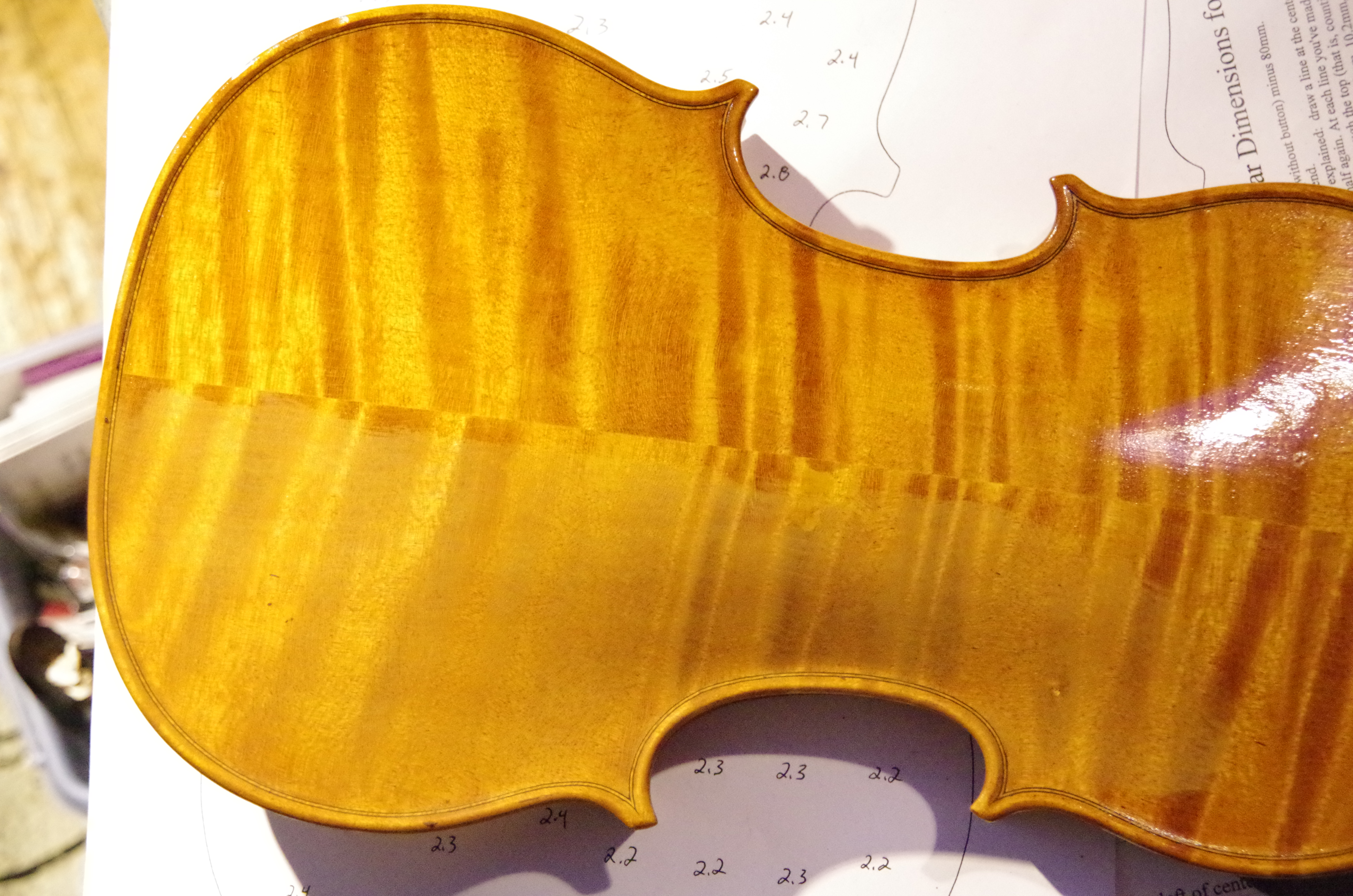 Jag köpte för några år sedan en billig, i princip rätt välbyggd, kinesisk fiol på auktion som demonstrationsmaterial för fioljustering på en Folklandiakryssning(*) gissningsvis 2018 (priset var $115) . Under kryssningen demonstrerade jag som representant för fiolbyggarna hur man byter ljudpinnen, justerar stallet etc. med möjlighet för kryssningsdeltagarna att provspela instrumentet efter justeringarna. Jag har efter kryssningen använt instrumentet som ett billigt övningsobjekt för inre justering genom magnetslipning. Jag öppnade instrumentet för något år sedan, mätte och justerade lock och botten. Det typiska felet på billiga kineser verkar vara att speciellt locket är tydligt för tjockt. Även botten kan vara för tjock men detta gäller främst sido-områdena eftersom bottenplattans mittdel gärna får vara relativt tjock. Jag började för några år sedan att vid sidan av nordisk folkmusik försöka lära mig kletzmermusik och instrumentet kom att bli mitt ”Kletzmerinstrument”.