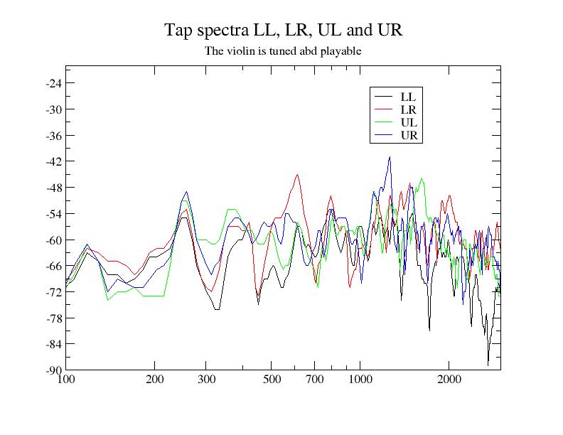 Klangen var generellt rätt bra men speciellt a-strängen klingade dåligt i förhållande till övriga strängar. Problemet löstes genom att flytta ljudpinnen kanske en halv millimeter utåt mot diskantsidan.