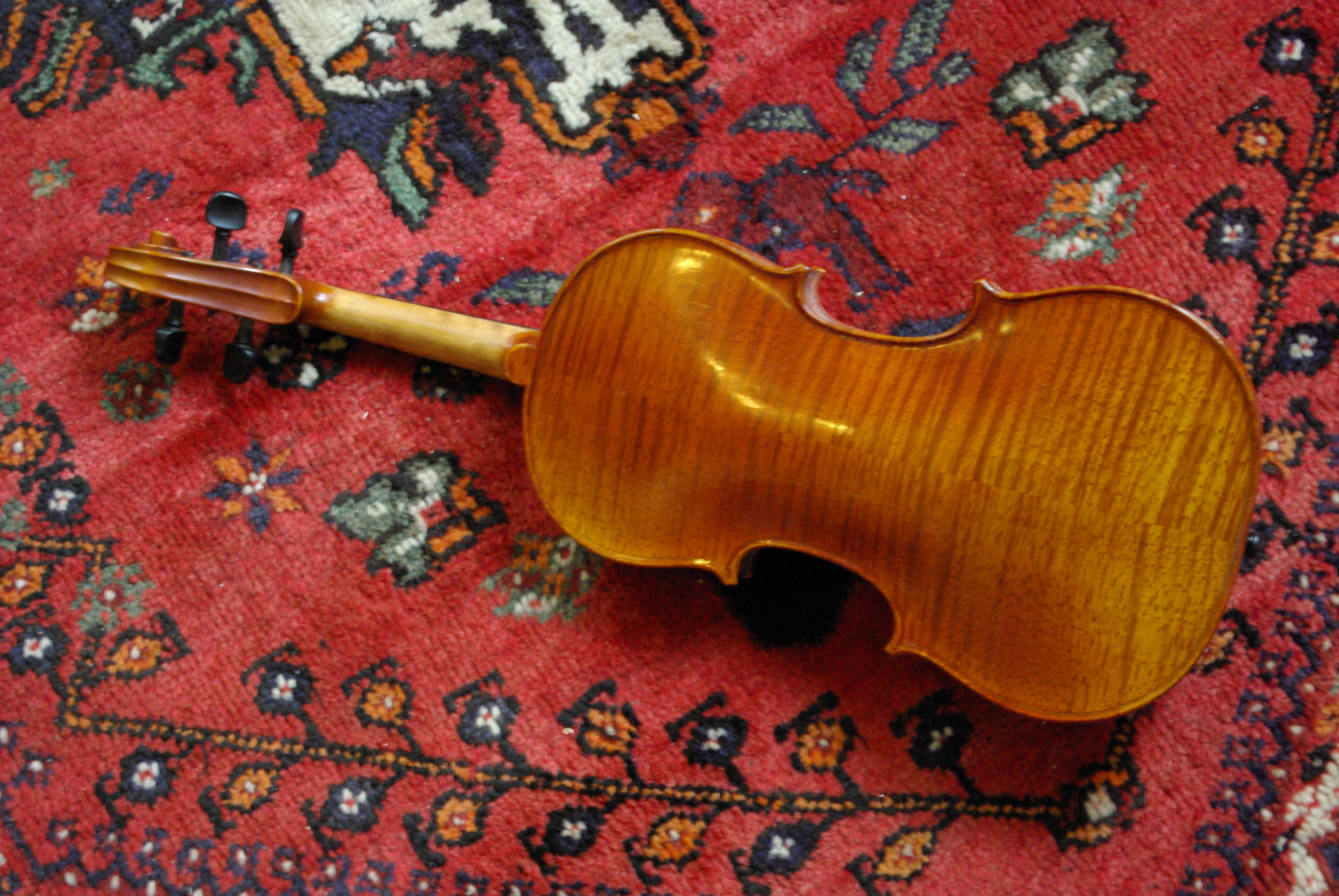 En kinesisk fabriksfiol verkar ofta ha komponenter som är frästa numeriskt vilket i sig är bra eftersom resultatet, om modellen man kopierar är välvalt, också blir relativt bra. Det går i princip att hitta toppinstrument bland tusentals medelmåttor om allting råkar passa ihop samtidigt. I praktiken får man ett bra grundinstrument som är betydligt bättre än 1960-talets eller 1970-talets billiga Tjeckiska kopior. Ett problem är att många av fabriksfiolerna har plattorna frästa kanske 0.5 mm för tjocka … vilket är bra eftersom det tillåter oss att i efterhand stämma plattorna med en ofantlig kvalitetshöjning som resultat. Det använda materialet i fioler av ovanstående klass är ofta förvånande bra. Locket består av mycket jämnvuxen gran och botten är snyggt flammig lönn.