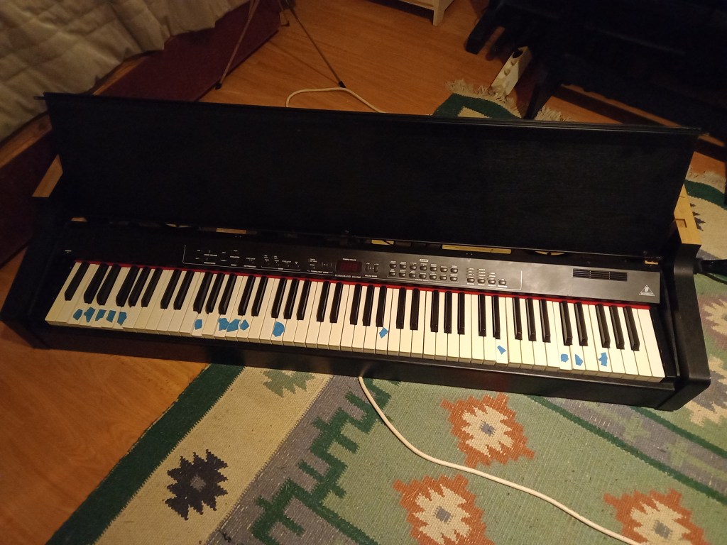 Jag råkade av en slump se att ett elpiano av typen Behringer Eurogrand EG2180 fanns till salu. Annonsen konstaterade att ett par tangenter inte riktigt gick tillbaka efter nedslag. Det begärda priset var 55 Euro d.v.s. ca. 500 SEK. Jag träffade säljaren som visade sig vara en trevlig utländsk studerande som studerar teknik på den avdelning på Aalto universitetet där jag själv i tiderna har undervisat. Säljaren var tydligen rätt förvånad över att jag var ganska ointresserad av att provspela instrumentet efter att jag såg att elektroniken tydligen fungerade. Jag var ju medveten om att jag sannolikt skulle vara tvungen att plocka isär instrumentet helt. Jag visste mycket väl att det fanns många fel.