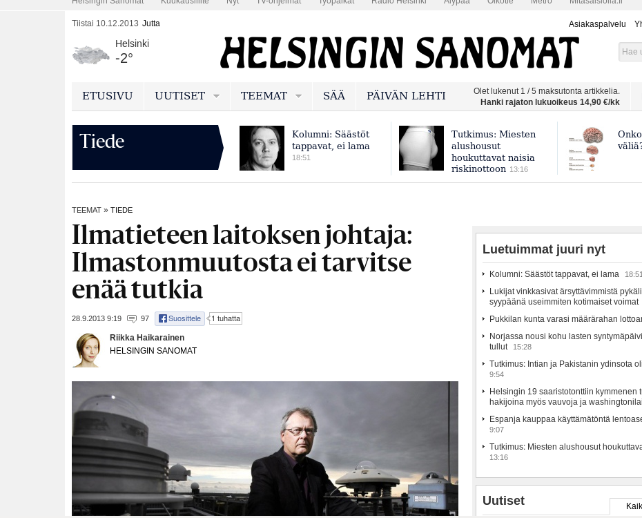 Jag ställer en fråga till cheferna Petteri Taalas och Mikko Alestalo på Meteorologiska institutet: Har man gett de finska beslutsfattarna all relevant information eller har man endast gett beslutsfattarna den information man tror att stöder den egna agendan. Om det senare alternativet gäller har man grovt misslett landets beslutsfattare.