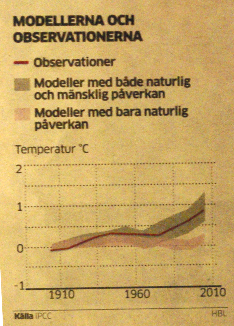 I kvällsnyheterna idag (13.4.2014) uttalade sig Petteri Taalas som är Meteorologiska Institutets chef och Finlands representant i IPCC. Inslaget betonade att mänskligheten snabbt måste sluta upp att använda fossila bränslen och ersätta dessa med t.ex. vindkraft och solenergi. Petteri Taalas konstaterade att utsläppen från fossila bränslen har nått en aldrig tidigare skådad nivå bl.a. till följd av utsläpp i utvecklingsländerna men främst i Kina och Indien. Tanken är naturligtvis att personen som följer med nyheterna skall göra kopplingen att situationen är katastrofal.