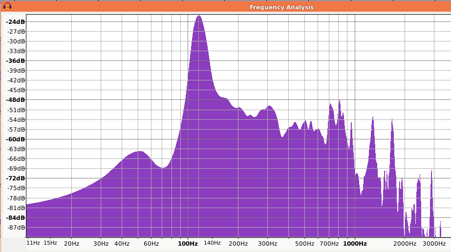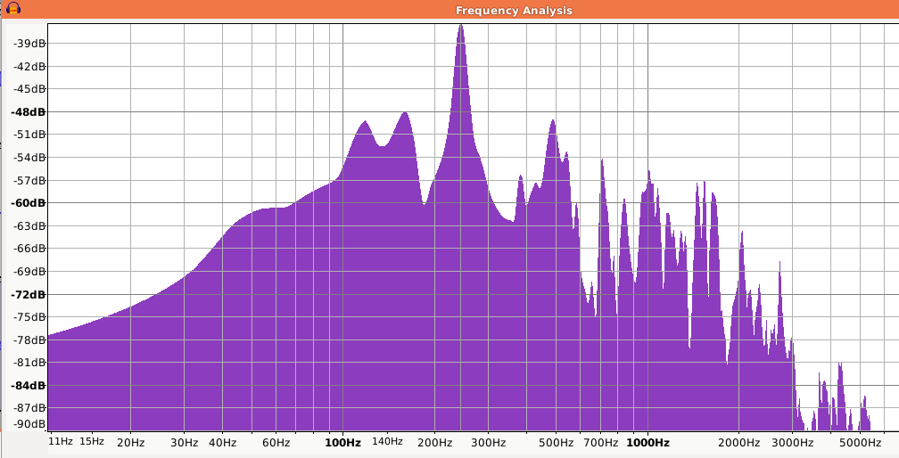 Fig. 2 Den högsta toppen i bilden vid 278 Hz är Helmholzresonansen A0.
